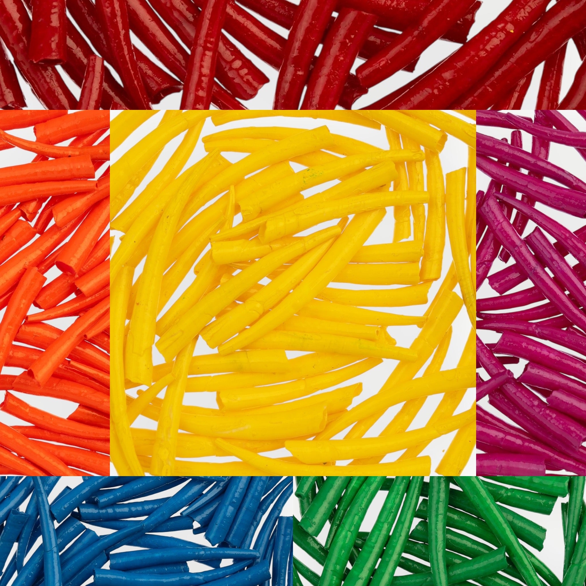 Add natural beauty and vibrant colour to your beadwork, regalia, or craft projects with these painted smooth dentalium shells. Each bag contains a mix of shells approximately 1"–1.5" in length. These shells are unsorted, making them perfect for experimenting or creating unique, one-of-a-kind pieces.