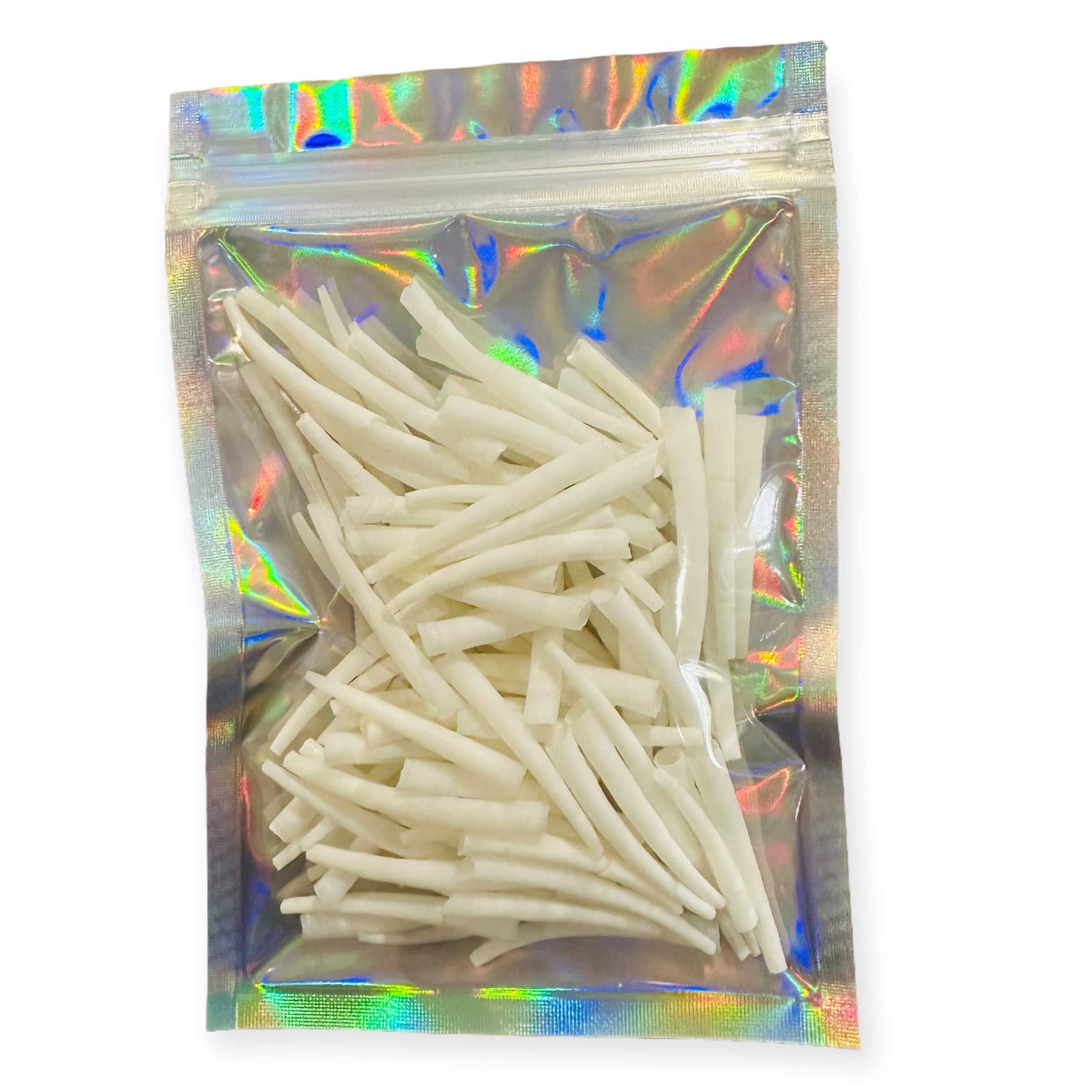 Get your beautiful smooth Dentalium Shells. Each bag contains shells that are approximately 1.5-1.75". However, these have not been sorted. The supplier may have added shells that are smaller.