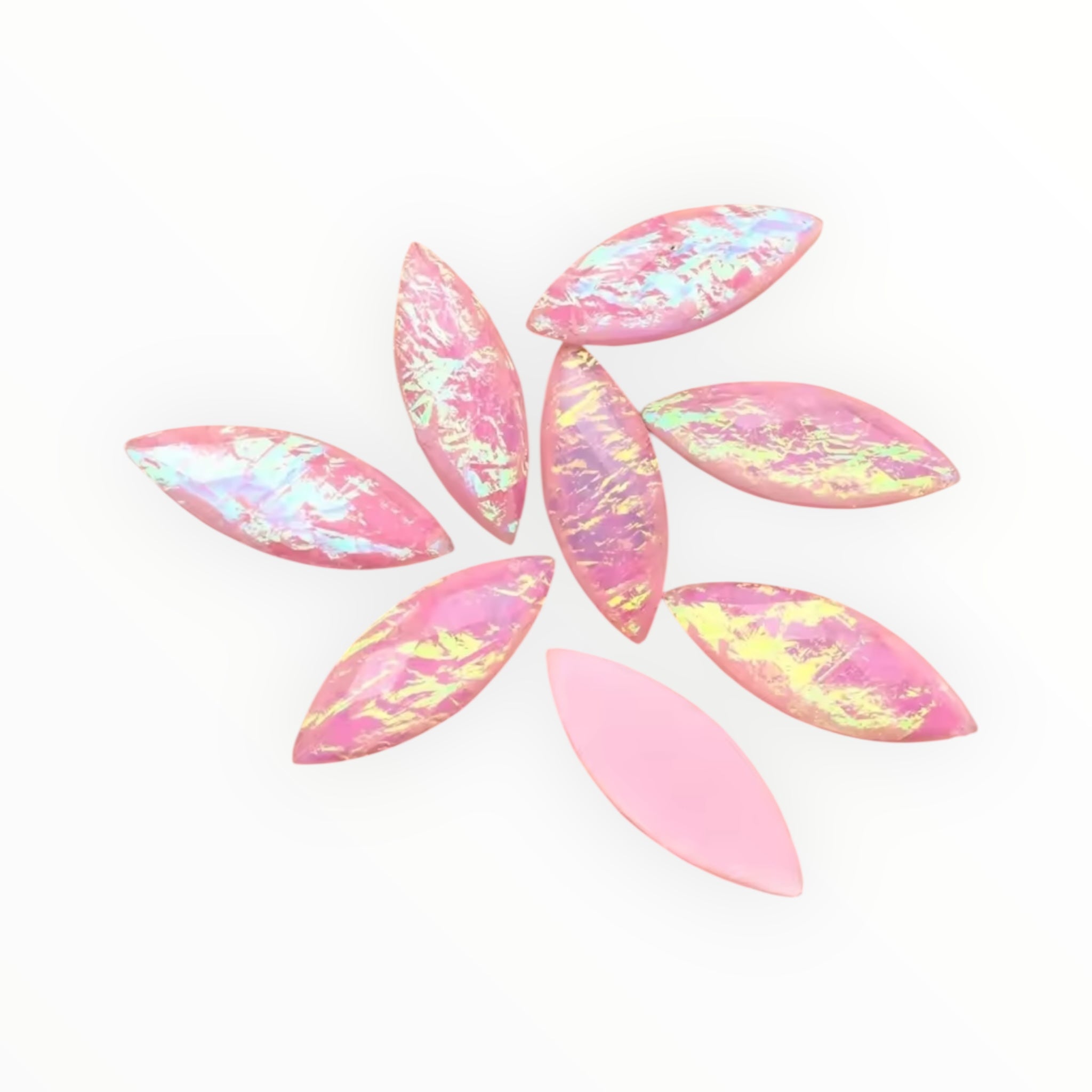 Add a sleek and eye-catching accent to your beadwork, jewelry, or craft projects with these Resin Navette (Horse Eye) gems. Their elongated marquise shape provides bold dimension while staying lightweight and versatile.