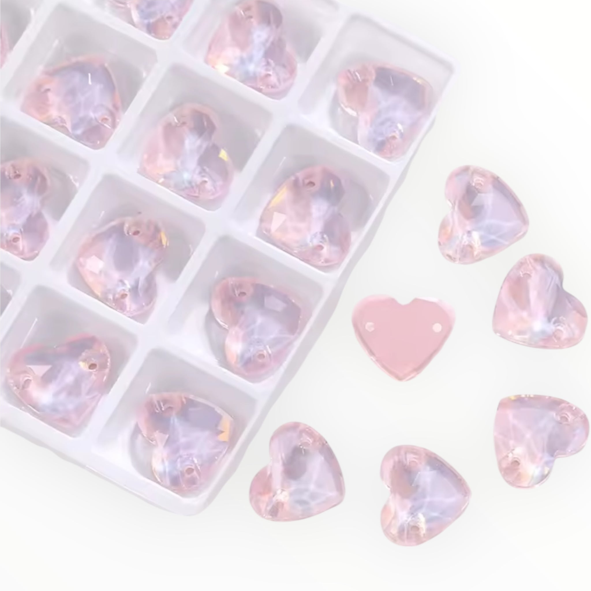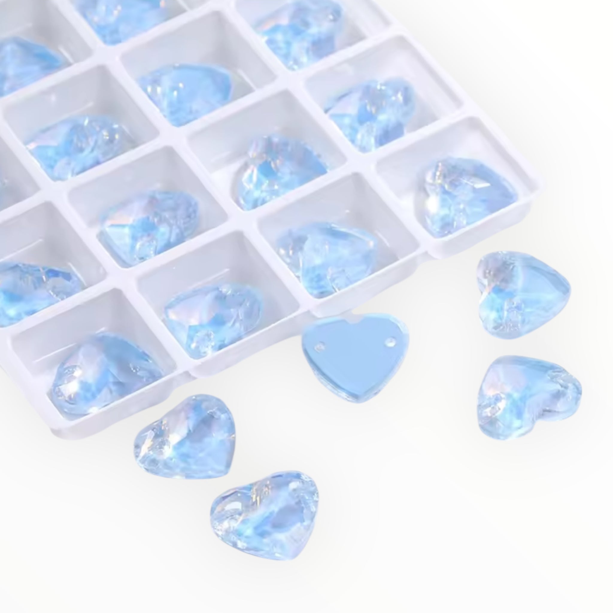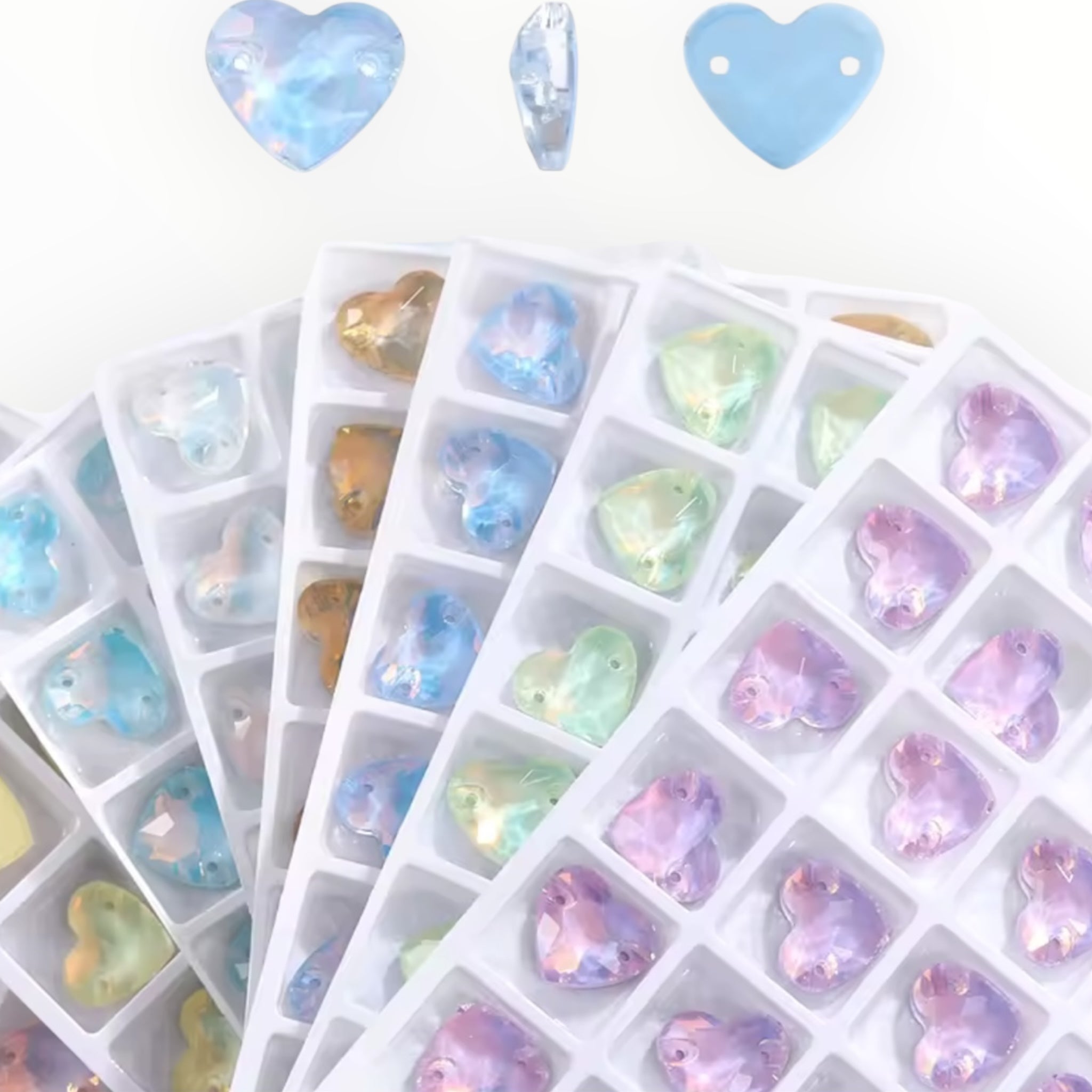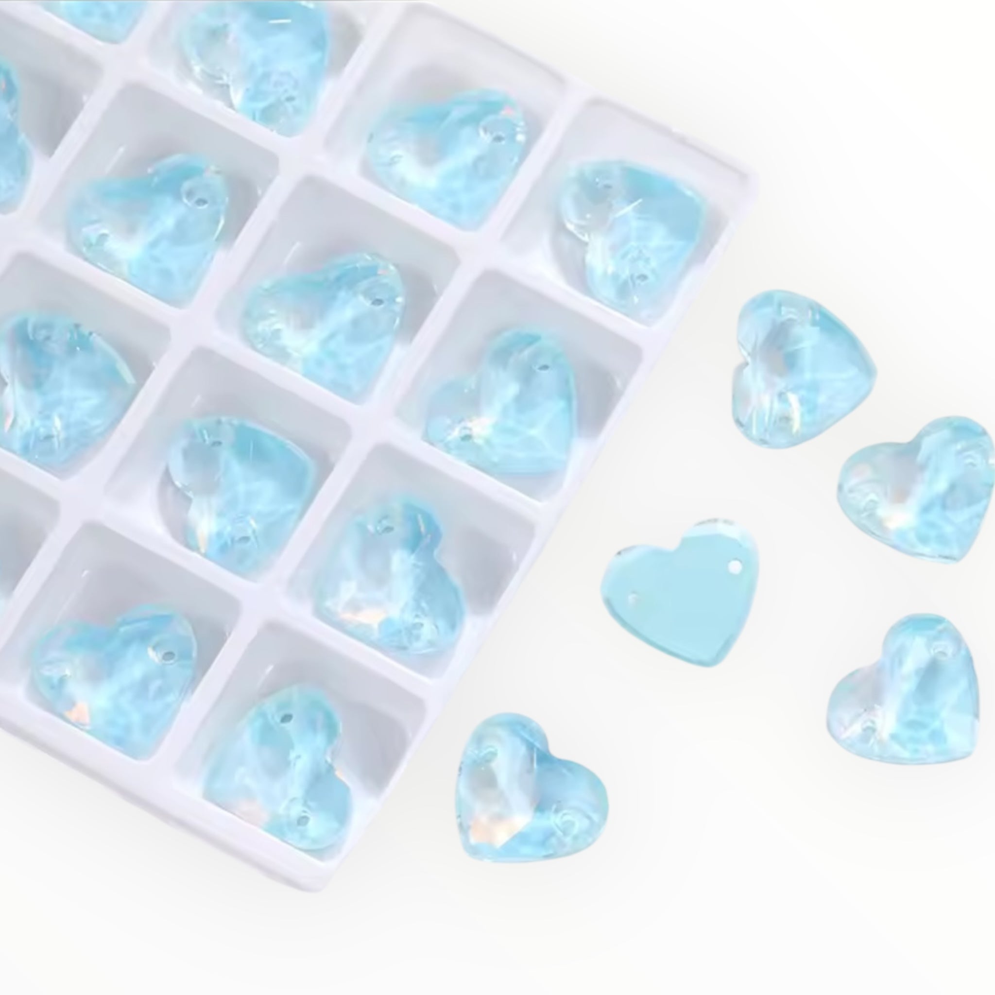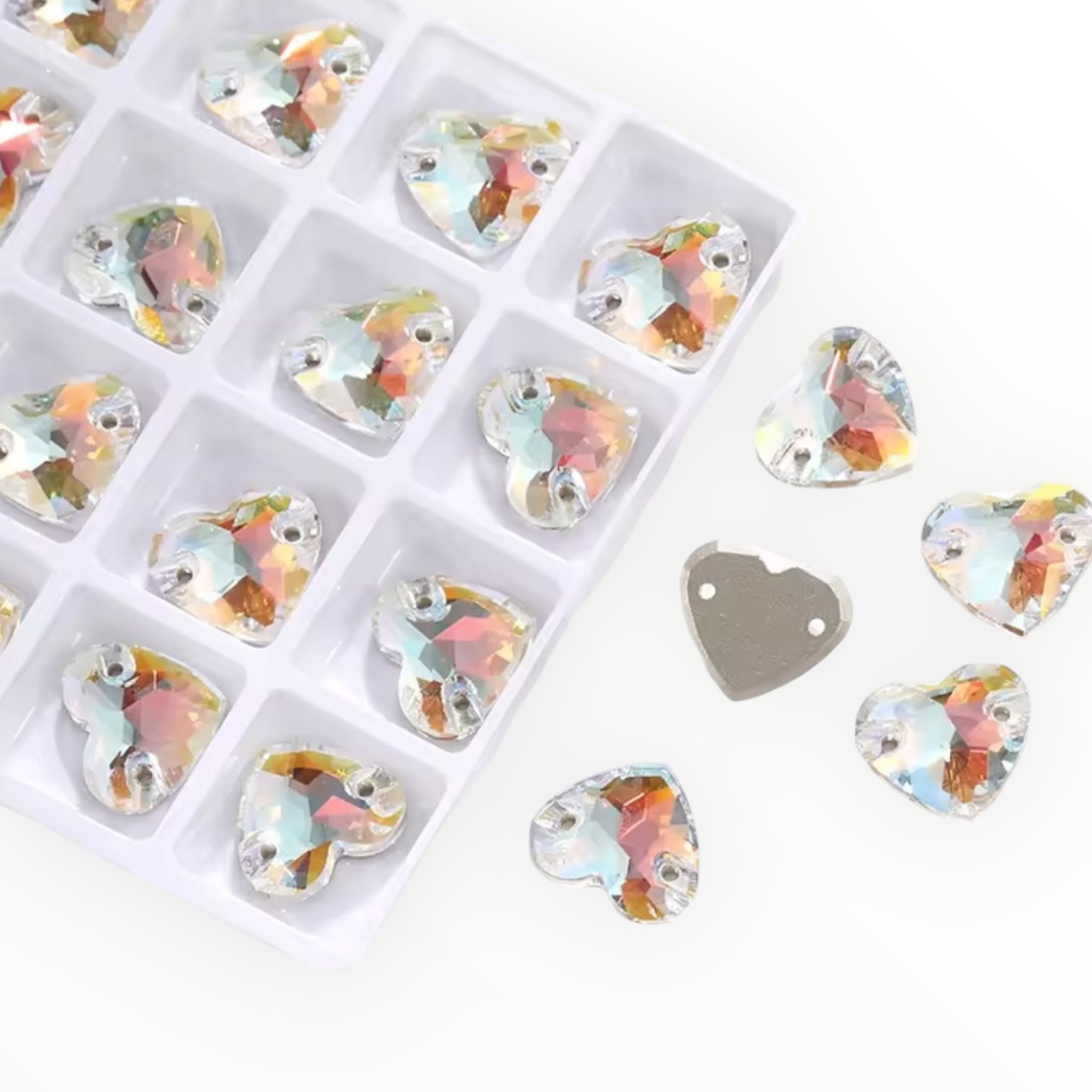 These dazzling 14x16mm fancy glass heart crystals are perfect for adding a romantic sparkle to your creations. With brilliant faceting and a charming heart shape, they’re sure to catch the light—and attention! Each piece comes with pre-drilled holes for easy sewing.