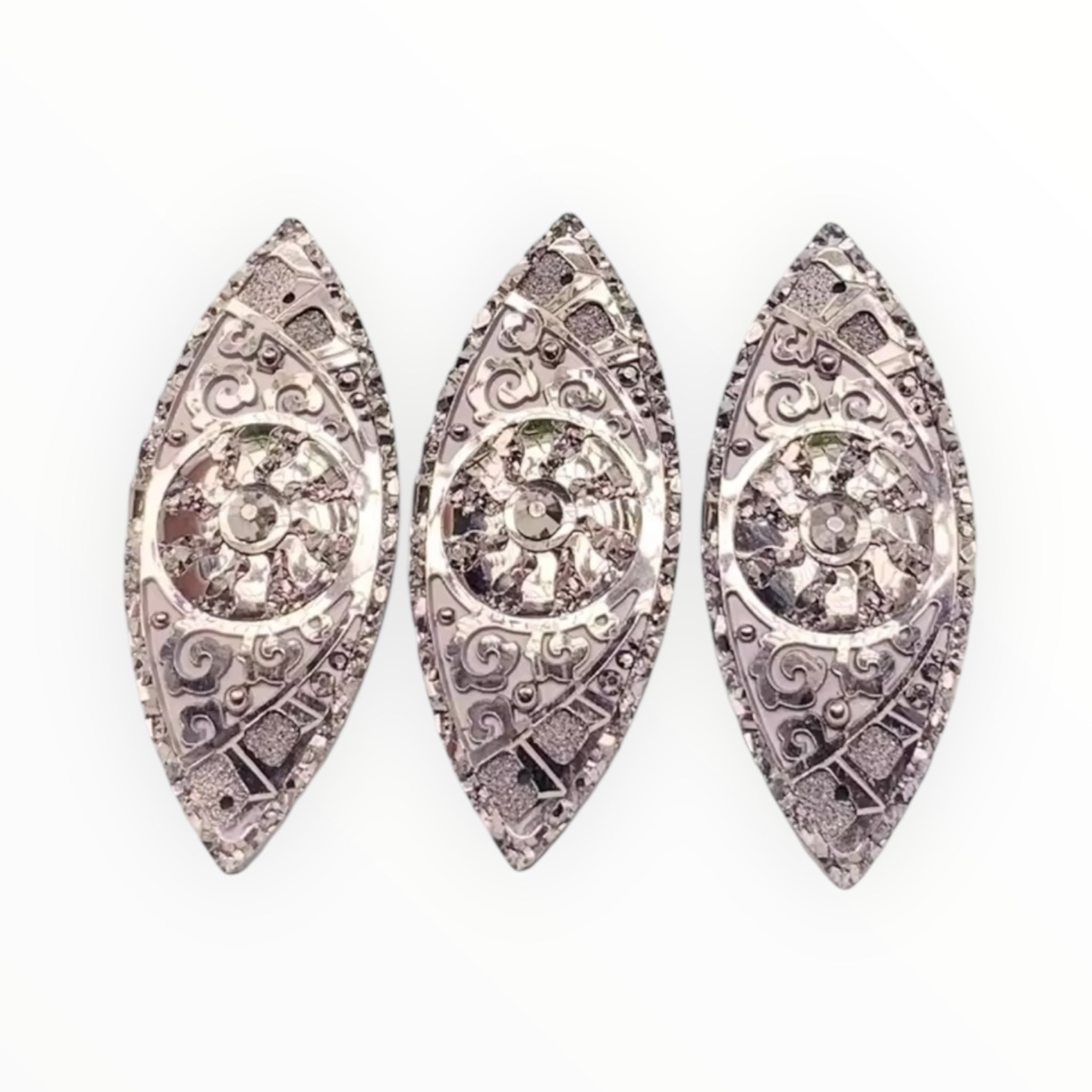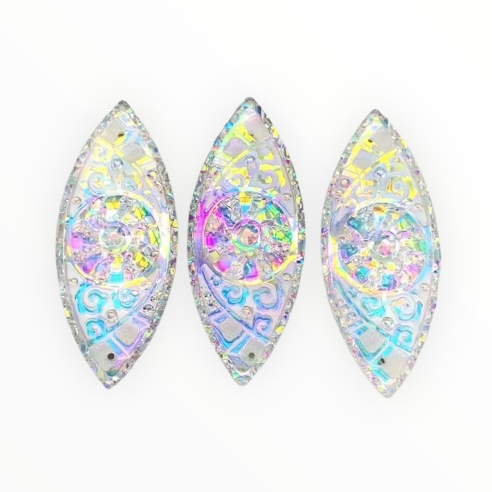 Sized at 19x48mm, each gem features a flatback for easy glue-on application, making them versatile for earrings, pendants, regalia, and creative embellishments.