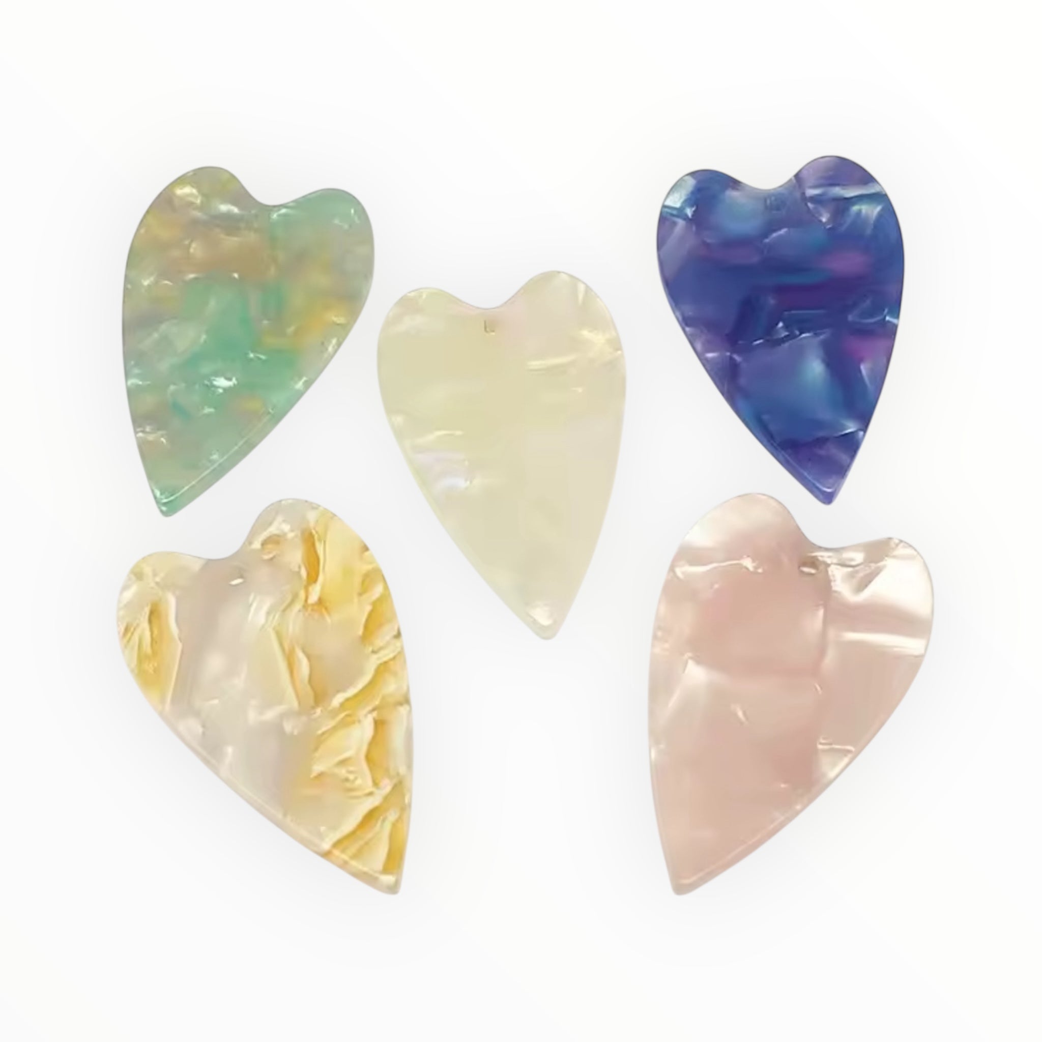 Add bold style and dimension to your beadwork, regalia, or craft projects with these Marble Blend Acrylic Heart Gems. Featuring a stunning marbled finish and a convenient one-hole sew-on design, they are lightweight, eye-catching, and easy to incorporate into any project.