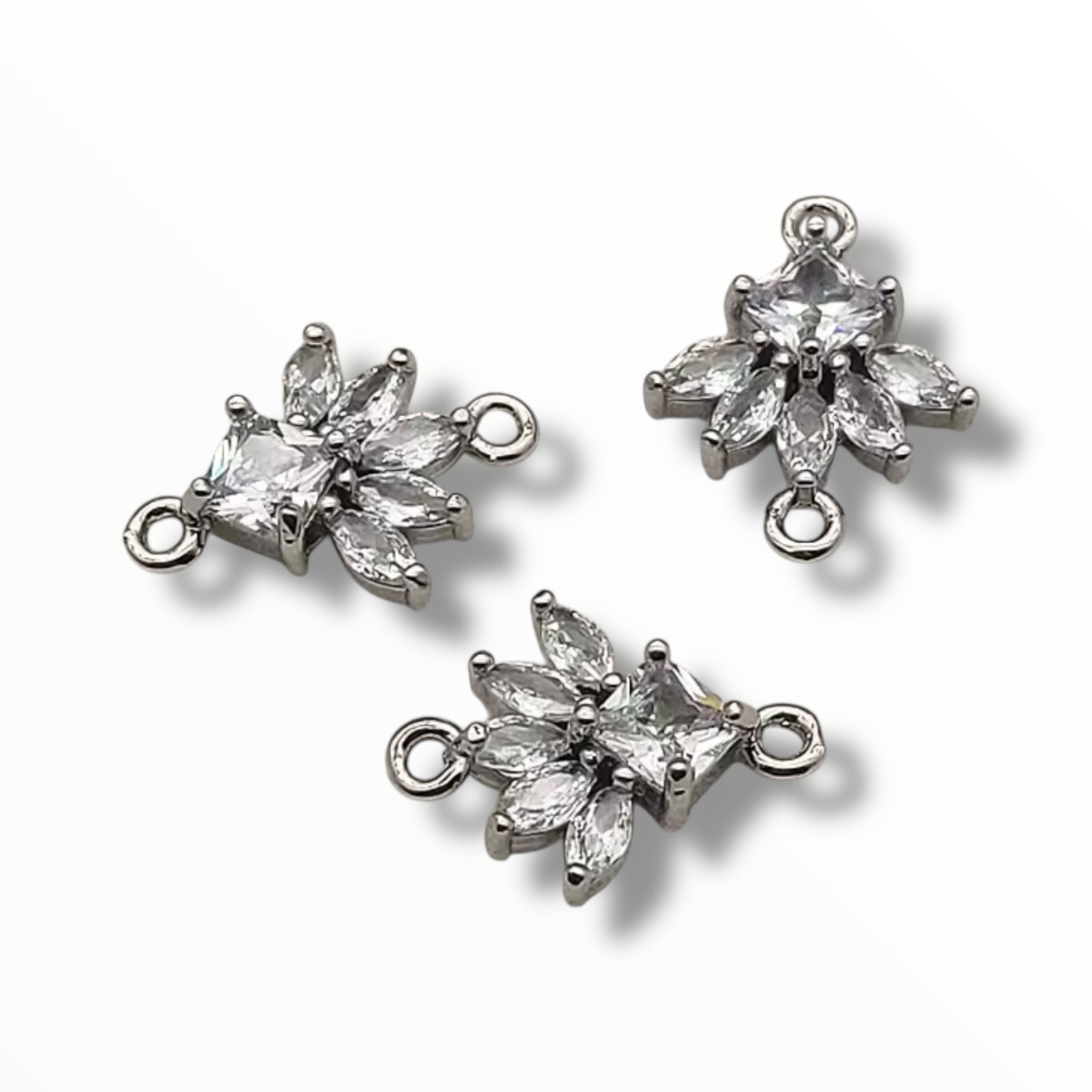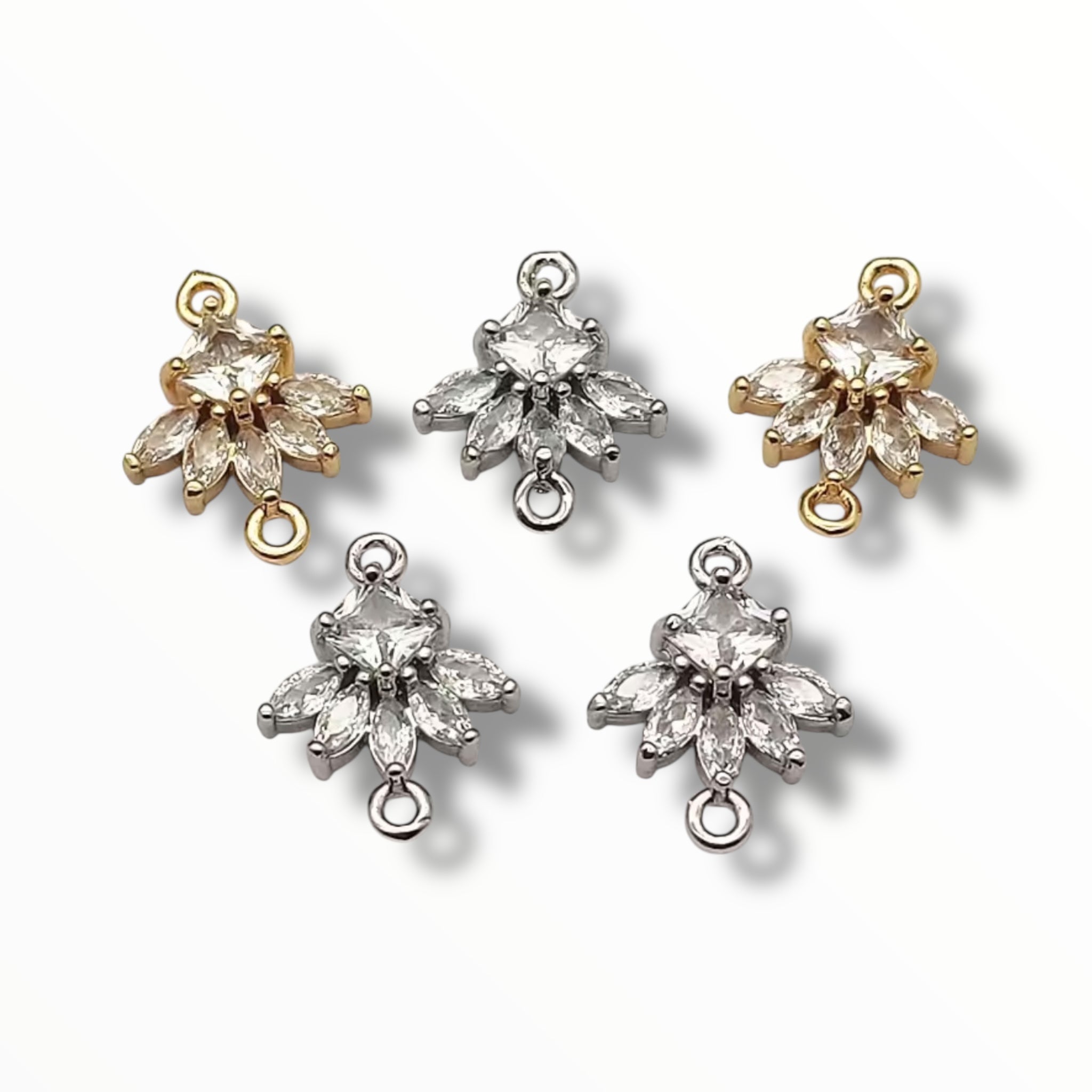 Add brilliant sparkle to your designs with these Cubic Zirconia Flower Connectors, crafted from durable copper metal and finished in elegant KC Gold and Rhodium tones. Each connector features high-quality cubic zirconia stones that reflect light beautifully — perfect for adding a touch of luxury to bracelets, necklaces, and earrings.