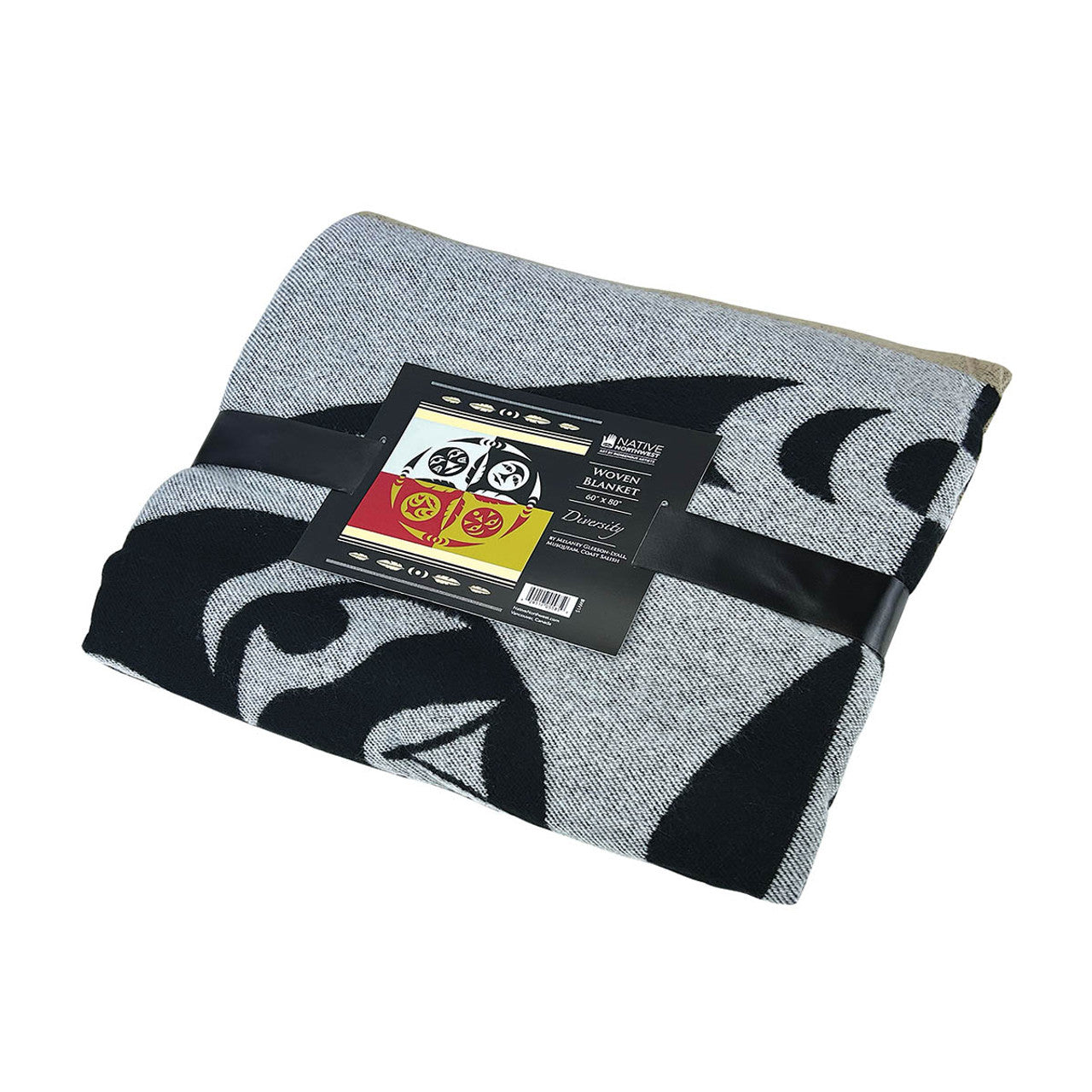 Wrap yourself in comfort and tradition with the Visions of Our Ancestors woven blanket, featuring the beautiful design of Leila Stogan, a Coast Salish, Musqueam artist. Part of the Salish Weaving Collection, this blanket combines soft, cozy warmth with striking Indigenous artistry.