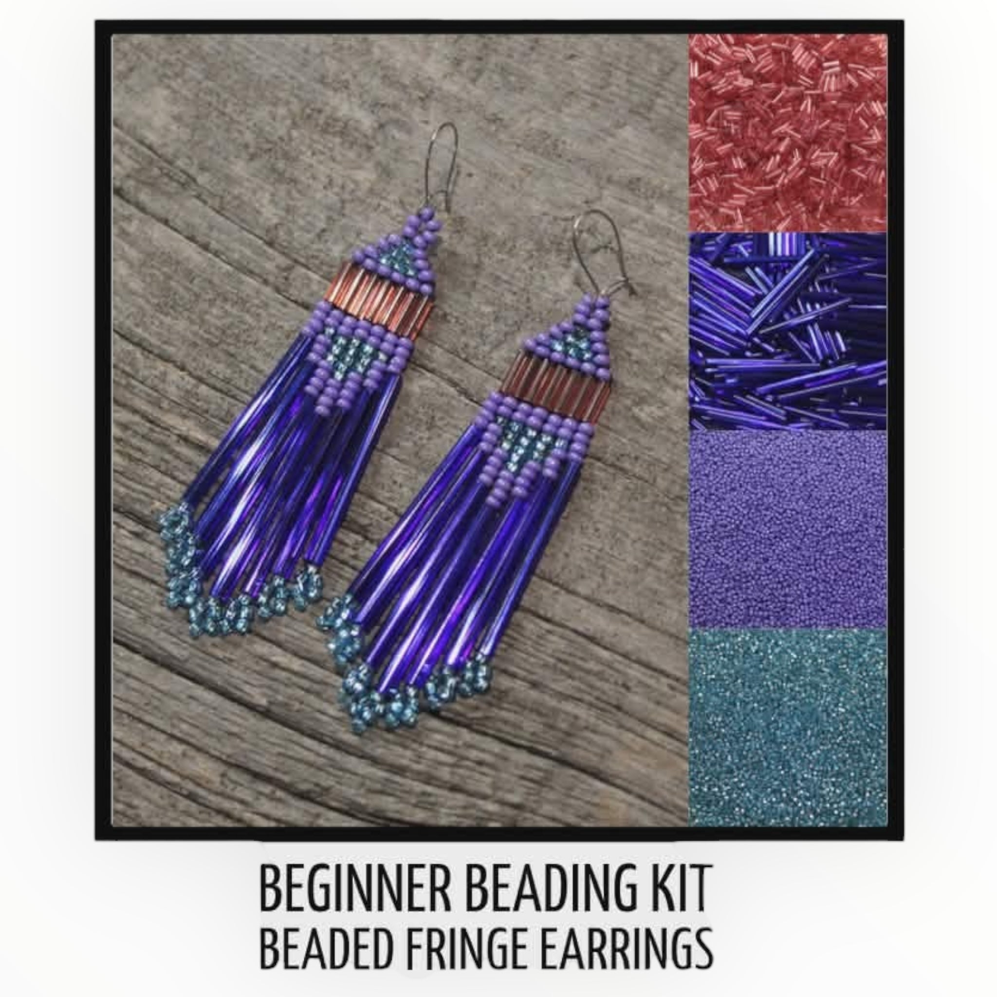 Kit includes everything you need except scissors! Create your very own beaded fringe earrings with this beginner beading kit created by Zhawenim Designs.