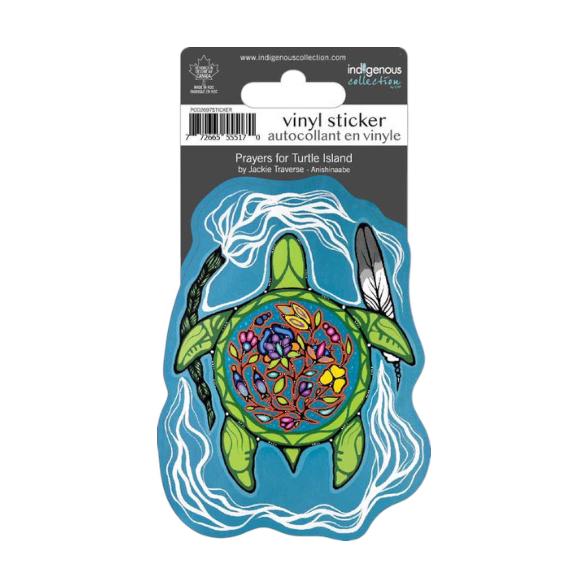 Carry a message of healing and strength with this vinyl sticker, featuring Prayers for Turtle Island by Anishinaabe artist Jackie Traverse.