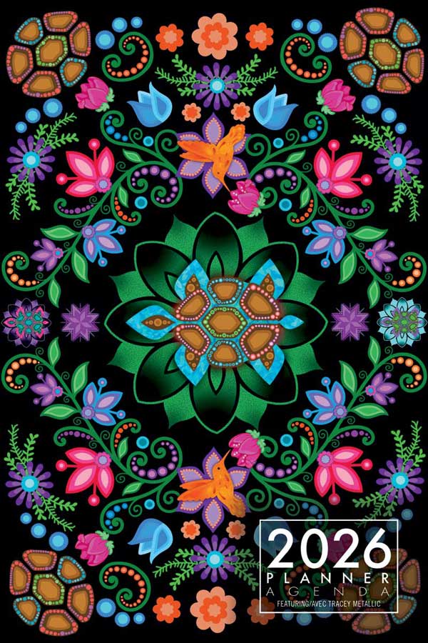 Infinity 2026 Weekly Planner by Mi’gmaq artist Tracey Metallic. 6x9” coil-bound with art, 128 pages, 2026–2027 calendars. Made in Canada.